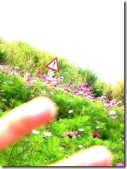 熟悉的波斯菊真的在那裡等我,直挺挺地迎著陽光,就跟以前一樣,揪甘心。