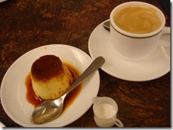 飯後甜點是焦糖味十足的烤布蕾。熱咖啡非常濃郁,好喝喔~鮮奶球則是由很迷你的小塑膠杯裝著,卡哇伊~
