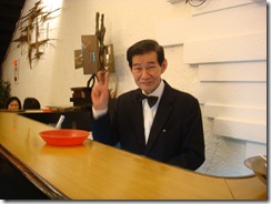據說已經服務了數十年的店經理~他打趣地說,這間店跟本店比起來「店是卡新,不過人卡舊啦」~哈哈~你看他還Nice地答應讓我拍照,超可愛~這張是特地拍給薇看的~我喜歡他的蝴蝶結(而且還不對稱:P)~